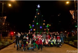 Durant cette randonnée, les patineurs apportent un cadeau à offrir aux enfants hospitalisés avant de parader déguisés sur le thème de Noël dans toute la ville rose.